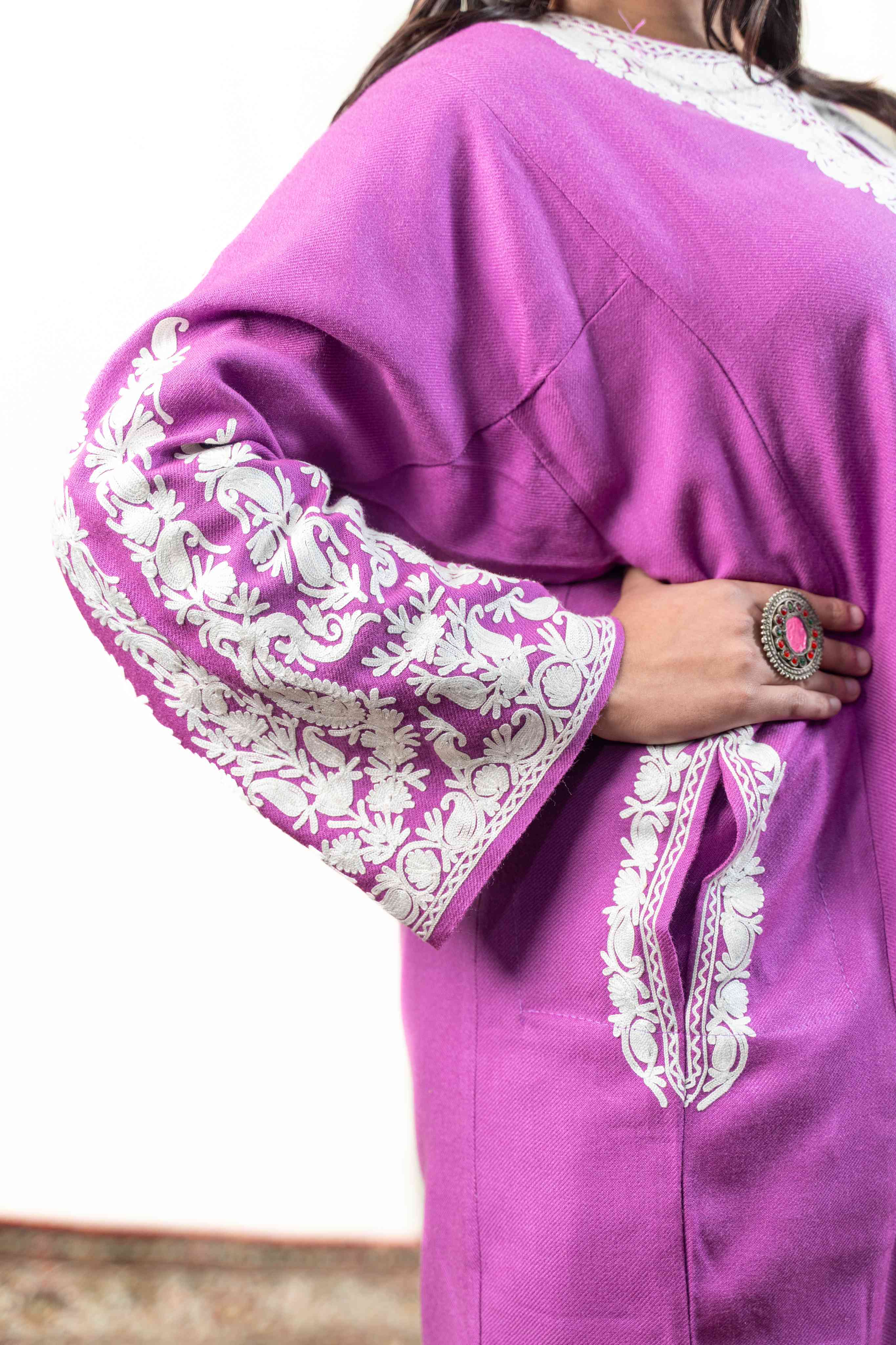 Bold. Audacious. Unforgettable. This Mystic Purple Aari Work Pheran demands attention with its striking violet palette and fearless embroidery. Hand-crafted with meticulous aari work, every thread tells a story of Kashmiri artistry pushed to its limits. This isn't just traditional wear—it's a statement for those brave enough to stand out. Wear it when you're ready to turn heads and challenge conventions. For the daring soul who refuses to blend in.